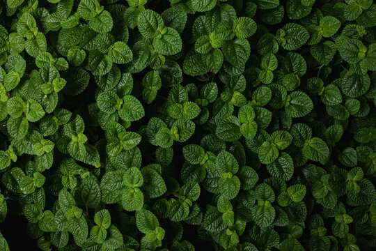 Full Frame of Green Leaves Pattern Background, Nature Lush Foliage Leaf  Texture.