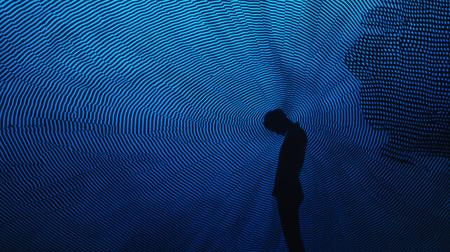 Introspection: A Silhouette Against a Blue Abstract Background.  The interplay of light and shadow creates a mood of contemplation and mystery.