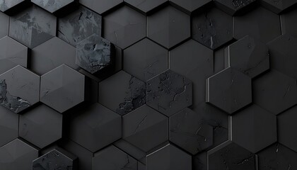Dark, textured, three-dimensional hexagonal wall pattern with cracked stone/marble accents throughout