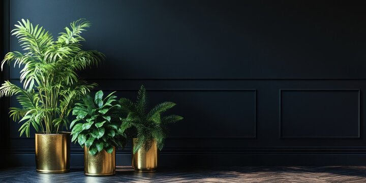 An inviting agency wall for a zoom call background with modern furniture and plants, dark grey wall color
