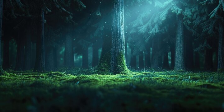 Enchanting luminous swarm in mystical nocturnal forest