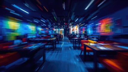 Skyline at night with zoom effect, Manhattan, New York City, USA