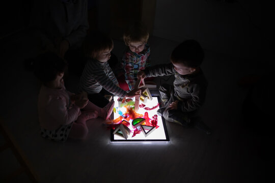 Black matte textured background with floating dust particles illuminated by soft light in the top right corner, creating a deep contrast between black and white. This abstract design emphasizes textur