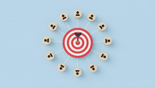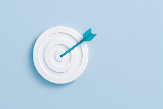 3D Bullseye Target with Teal Arrow on Light Blue
