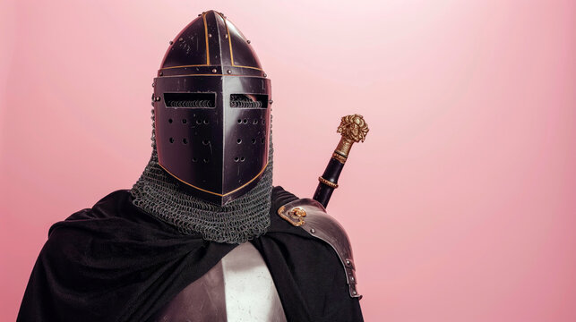 A knight, clad in shining armor and a cape, stands proudly against a wall, resembling a modern-day darth vader with their breastplate and cuirass, exuding a sense of strength and mystery within the i