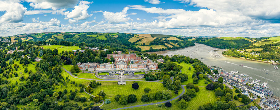 Panorama of Britannia Royal Naval College from a drone, Dartmouth, Devon, England