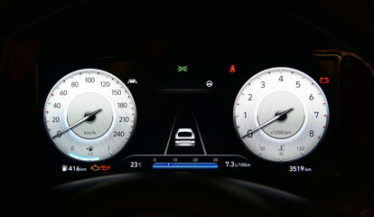 Digital instrument panel in a modern car