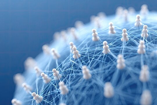 Connected figures forming a sphere on blue grid