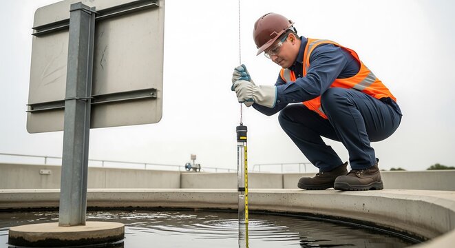 Technicians in Protective Gear Collecting Water Samples from River to Monitor Wastewater Impact on Environment