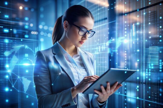 Digital data processing with female professional using tablet