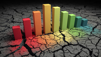 Data-Driven Approaches Transforming Modern Economics, Abstract digital visualization with vibrant bars representing data metrics against a blue background.