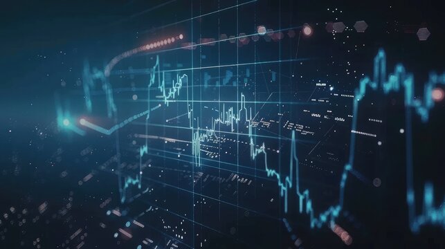 Digital graph interface over dark blue background. Concept of stock market and financial success.