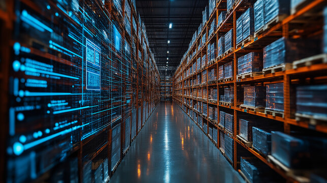 Futuristic financial data graphs enhancing warehouse operational efficiency