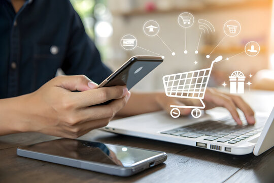 Businessman using a tablet for online shopping, showcasing the integration of technology in modern business