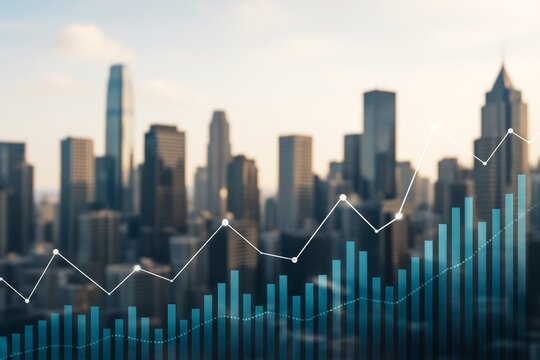 Economic data analytics with cityscape background