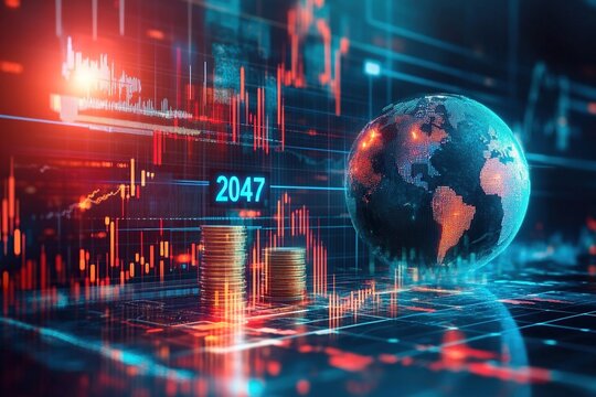 glowing digital globe with interconnected networks visualizing global data exchange, set against backdrop of digital screens and graphs. image conveys sense of advanced technology and global