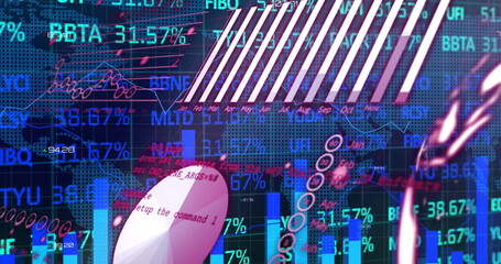 Digital data analytics with graphs and charts overlay