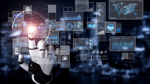 AI interacts with data analytics dashboard, reading trends, improving decisions, and enhancing insights using advanced data analytics capabilities. Marrow