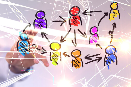 Group of multinational people and digital technology concept. Digital transformation. System engineering.