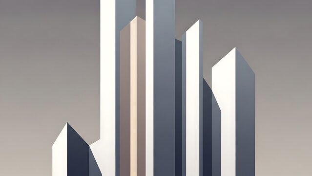 An abstract representation of a city skyline or upward-trending bar graph, composed of varying heights of rectangular pillars in neutral tones.