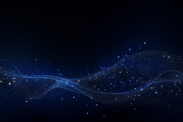 abstract dots blue waves on black background, digital ocean of datas in digital network