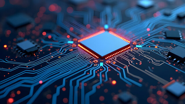 Fingerprint Embedded on Circuit Board amid neon microelectronics.