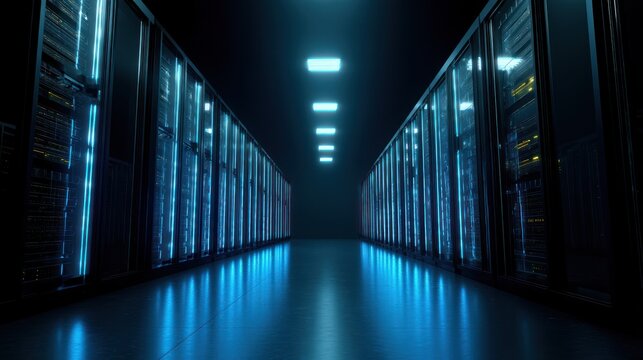 Data server center operations modern facility digital hosting environment server room perspective technology concept