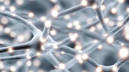 Abstract neural connections with silver network filaments glowing in clean futuristic technology pattern.
