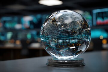 Futuristic digital globe representing the world's interconnected network and data flow.