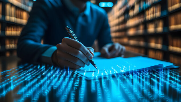 Man holding digitally signed confidential document with watermark, signature, hash, integrity verification checklist. Cybersecurity, digital file management, document protection, secure data handling