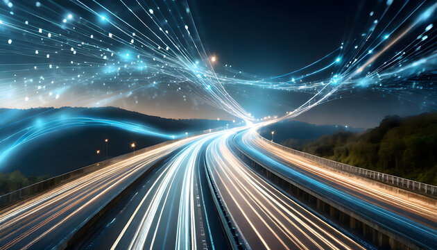 futuristic highway where data flows like streams of light, symbolizing the speed and connect. Generative AI.