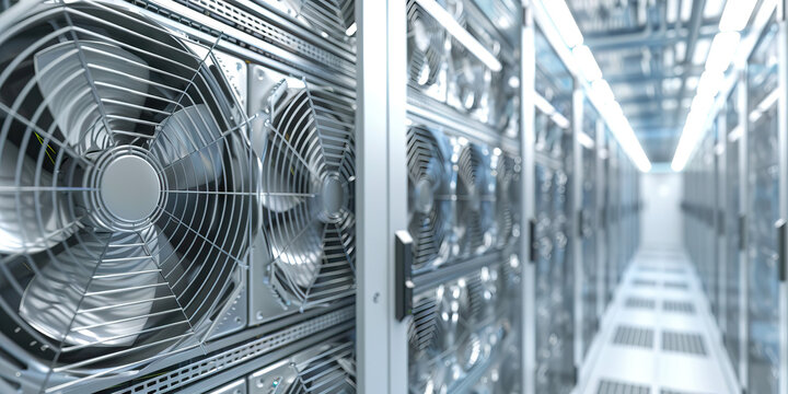A clean room hums as powerful fans keep server racks cool and running smoothly