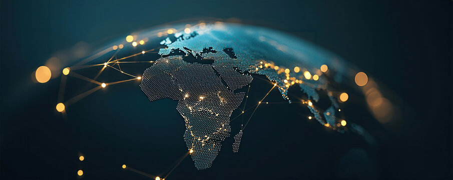 Global supply chain network with interconnected shipping routes and distribution hubs.