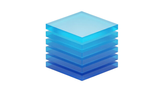 Abstract Stacked Geometric Blue Turquoise Layers Forming A 3D Effect Isolated Transparent Background