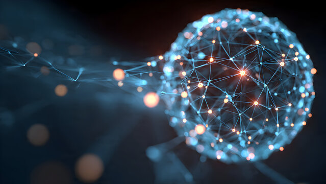 Abstract digital network with interconnected points and glowing nodes, illustrating complex data flow and connections. The image suggests a vast and intricate web of digital information.