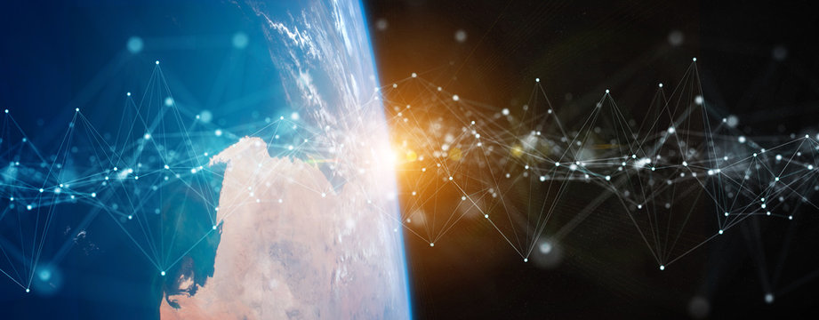 Global datas exchanges and connections system over the globe 3D rendering elements of this image furnished by NASA
