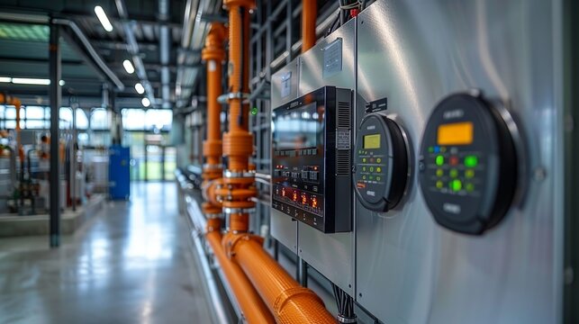 Pipes with built-in sensors and monitoring devices, transmitting data wirelessly to the control panels and displays. shiny, Minimal and Simple,