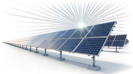 Close-up of solar panels under sunlight with digital data overlay, representing clean energy, innovation, and sustainability