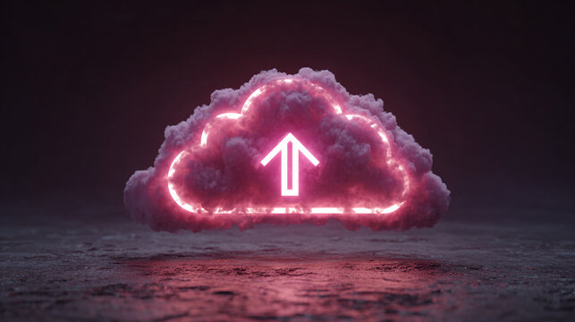 Cloud upload progress visualized as a glowing path of light, representing data transfer, digital connectivity, technology, and seamless cloud-based workflow.