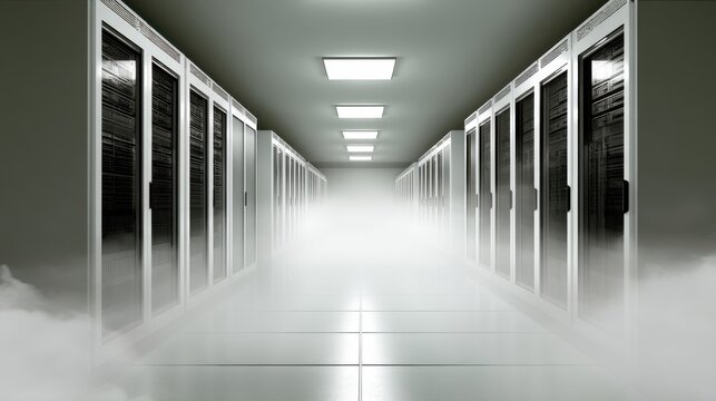 Data center operations high-tech facility server room digital environment futuristic viewpoint cloud computing concept