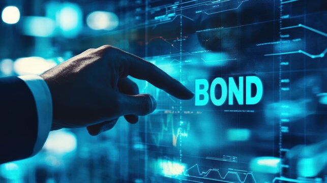 Digital interaction with bond data in a modern office environment futuristic technology concept
