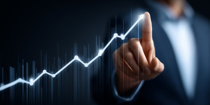Businessman analyzing data processing trends with artificial intelligence insights in modern office environment