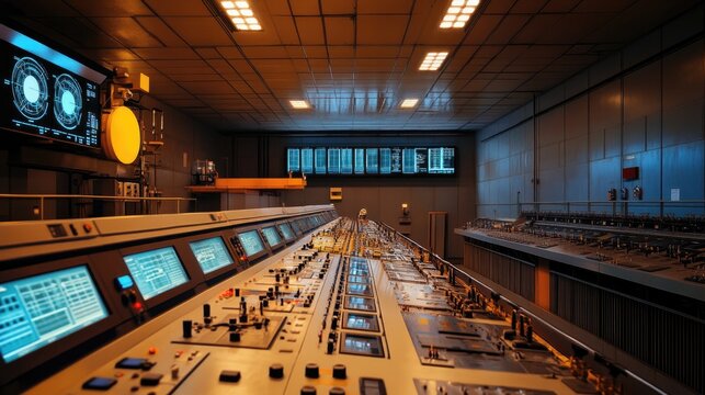 Control Room Interior with Multiple Panels and Displays in a Industrial Setting