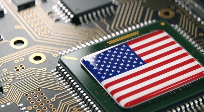 USA Flag Graphic on Processor Unit, Symbol of American Leadership in Tech Industry