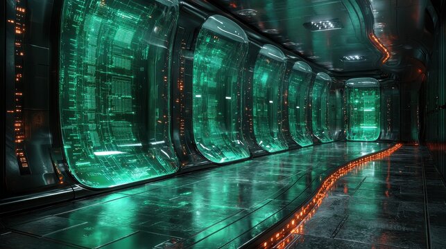 Advanced server room with digital data processing