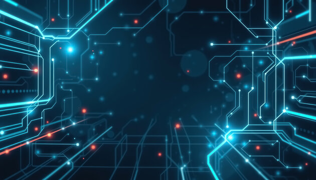 Abstract Circuit Board Tunnel with Empty Space for Text, Technology Background