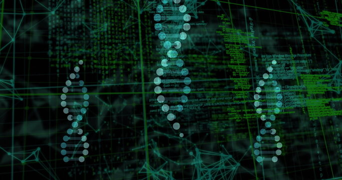 DNA strand and network connections, scientific data processing