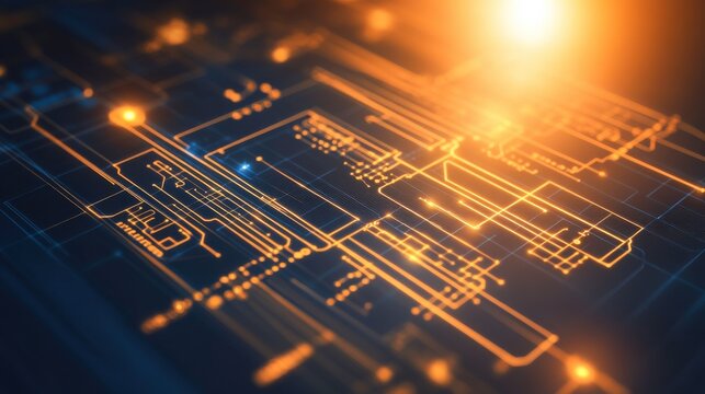 High-tech digital circuit board with data overlay visualization