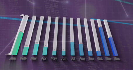 Image of financial data processing on purple background