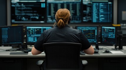 Modern control room with multiple monitors displaying data and graphs, designed for efficient operations and data analysis.